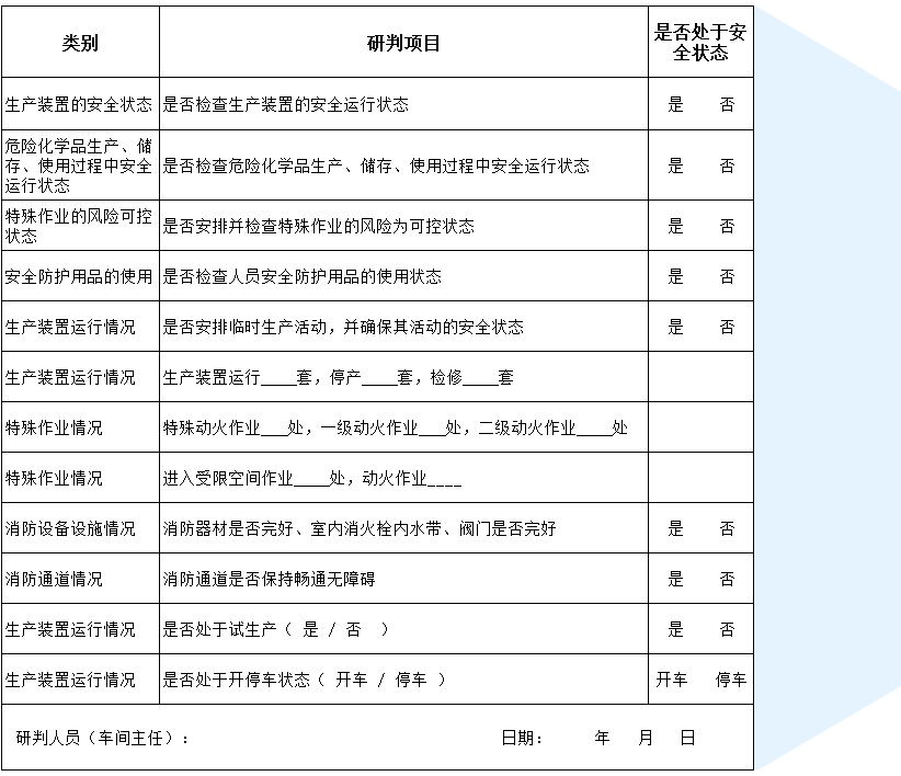 在每日开展班组交接班、车间生产调度会、厂级生产调度会布置生产工作任务的同时,要同步研判各项工作的安全风险落实安全风险管控措施。